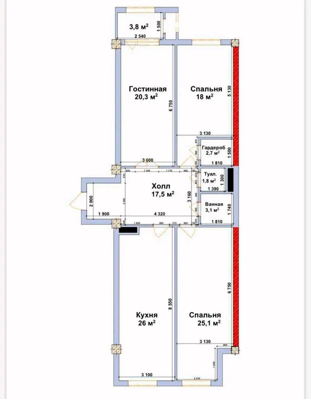 3-к квартира, 9 этаж, 118 м², Шохмансур