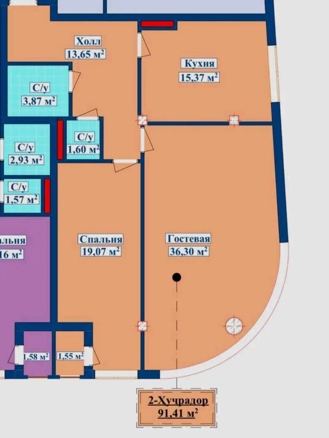 • Площадь91 м²,
