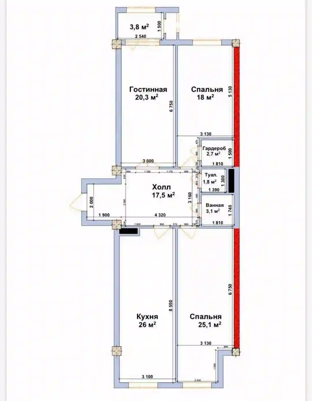3-к квартира, 3 этаж, 115 м², Сино