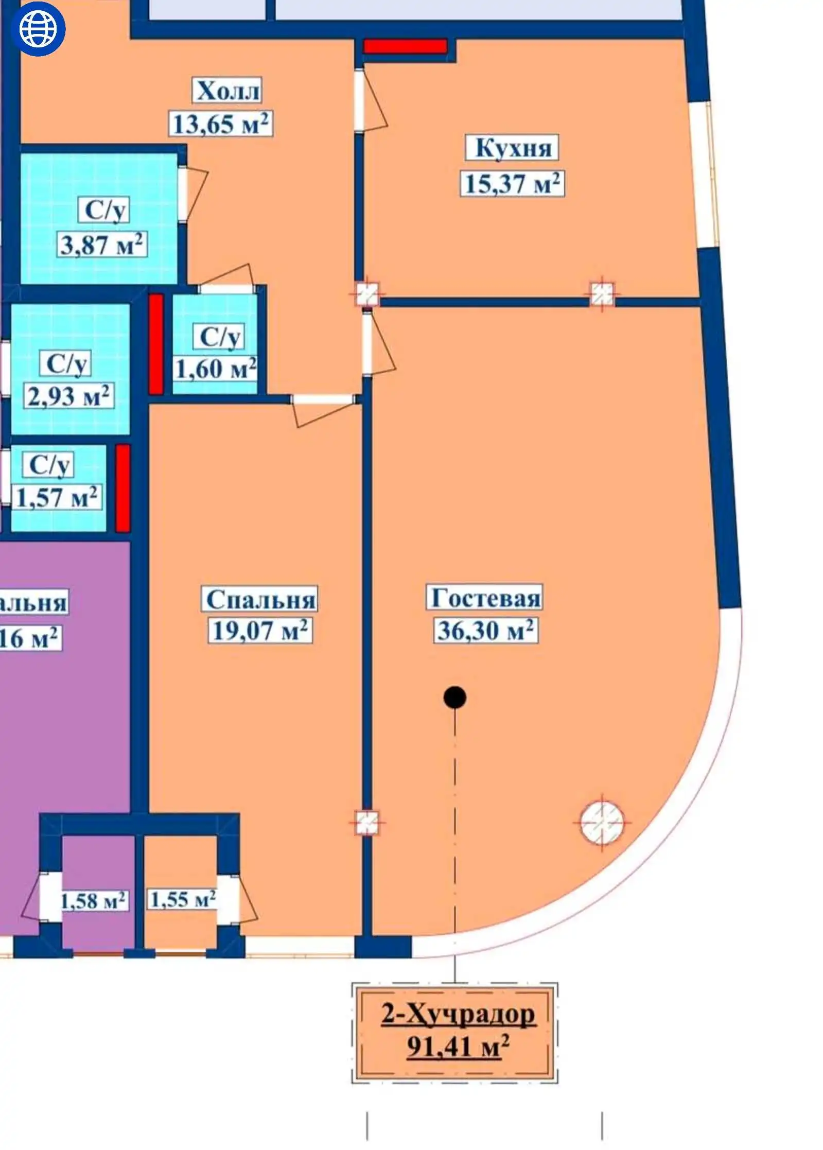 - Площадь91 м²,