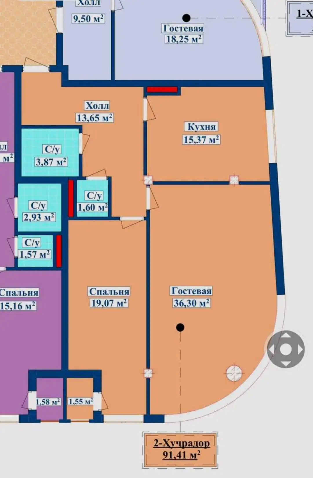 - Площадь91 м²,