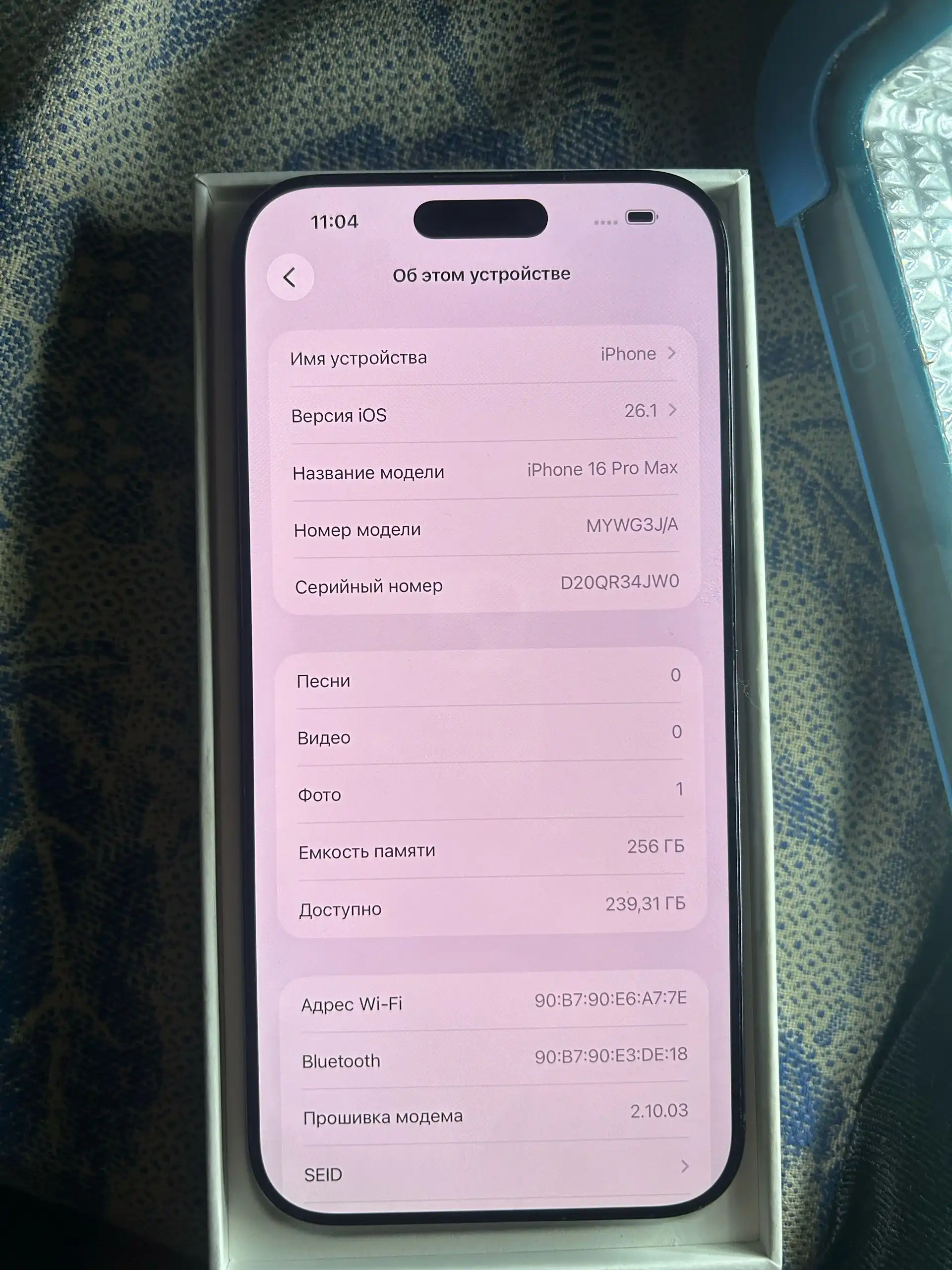 - Объем памяти 256 gb
