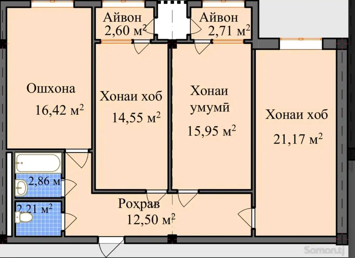 3-к квартира, 10 этаж, 91 м², Шохмансур