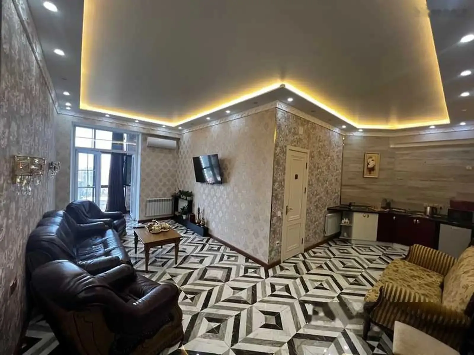 Уютная квартира в стиле люкс, одна спальня с выходом на балкон, Уютная Большая Кровать И Большой Шифонер. А Также студия где есть тв зона и кухня, компактная ванная с душевым. Две очень большие...