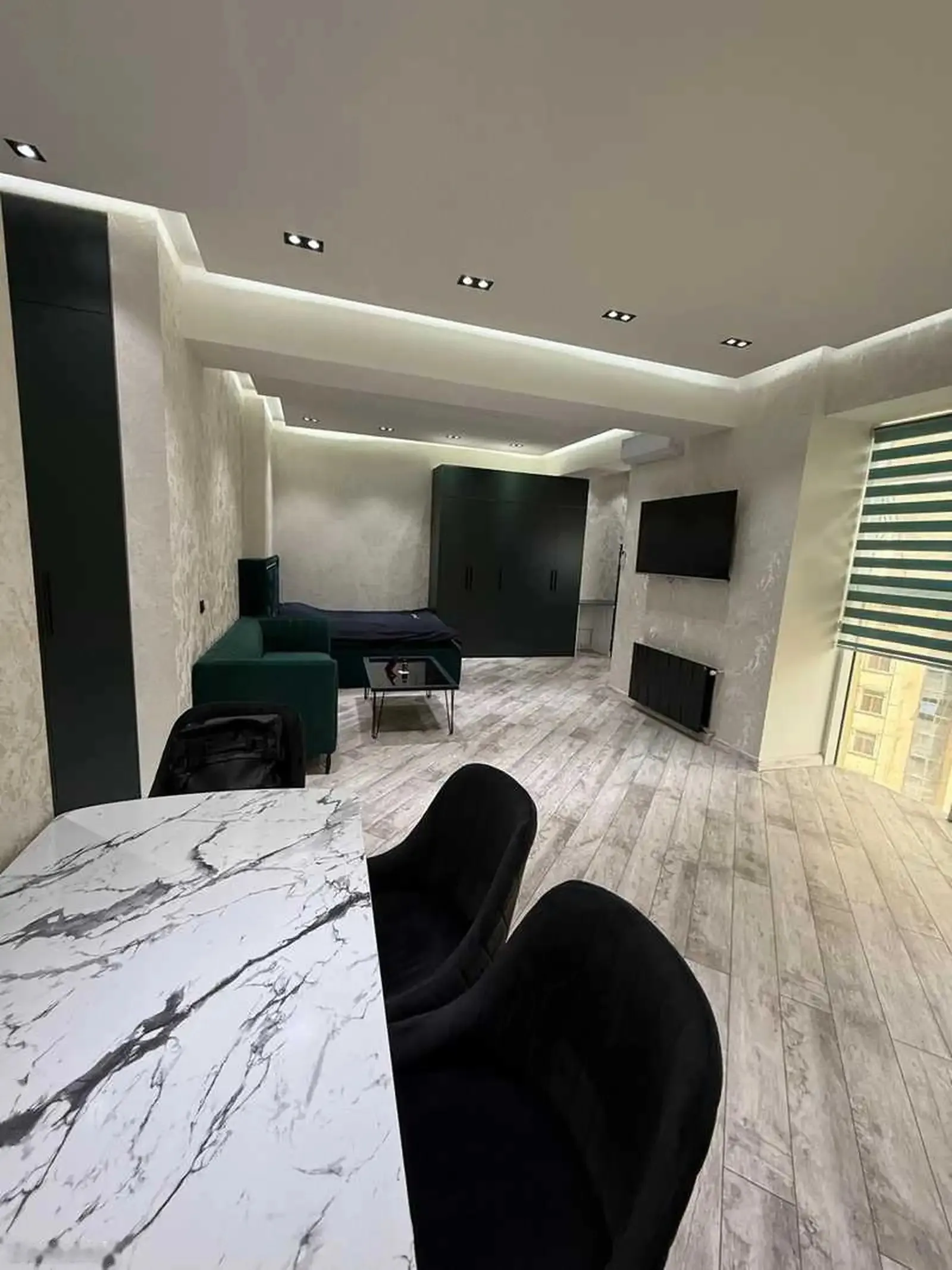 Сдается 1-комнатная квартира студия. Ремонт новый - всё есть Площадь : 43м2 Этаж: 9 Место : центр, Дом печать, против Алфемо Дом магазин PUMA. Залог 2000с