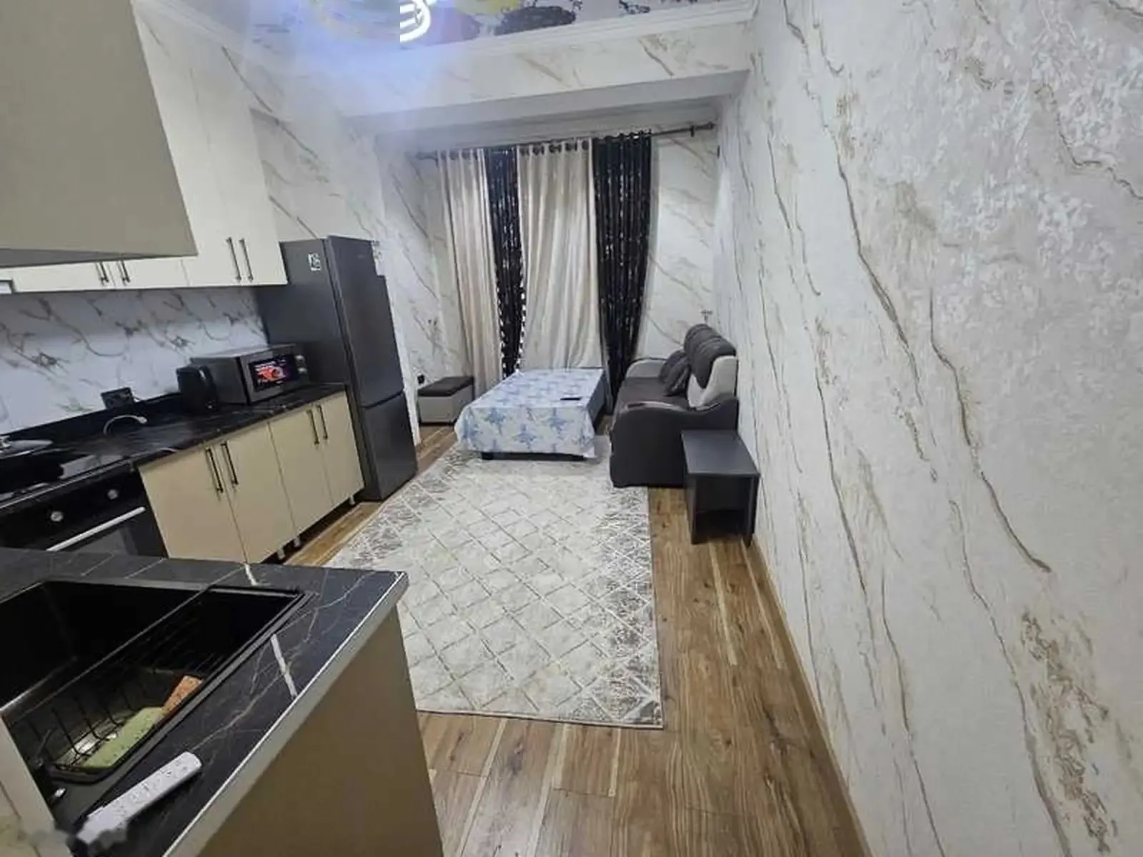 Ба ичора дода мешавад,хамаи чиз дорад:Холодильник,телевизор 2шт,кондиционер,микроволновка,духовка,стиральная машинка, то посуда хамааш хаст.Светафор Чулочка доми Гуля голд.4000с депозит мемонен.Сохибмулк
