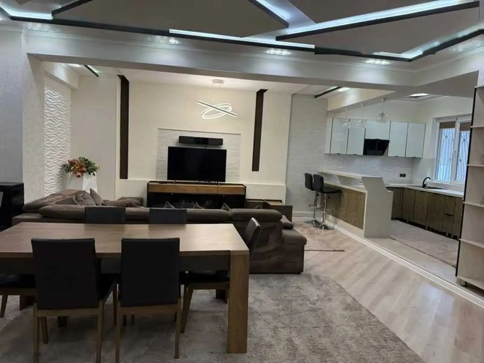 Сдается 4 ком кв студия на 11 этаже в доме симург. В квартире имеется 4 телевизора (55 смарт,43 смарт,32,32), 4 кондиционера, кулер для воды, гладилка сушилка пылесос, вай фай, 1 ванная+1 душ...