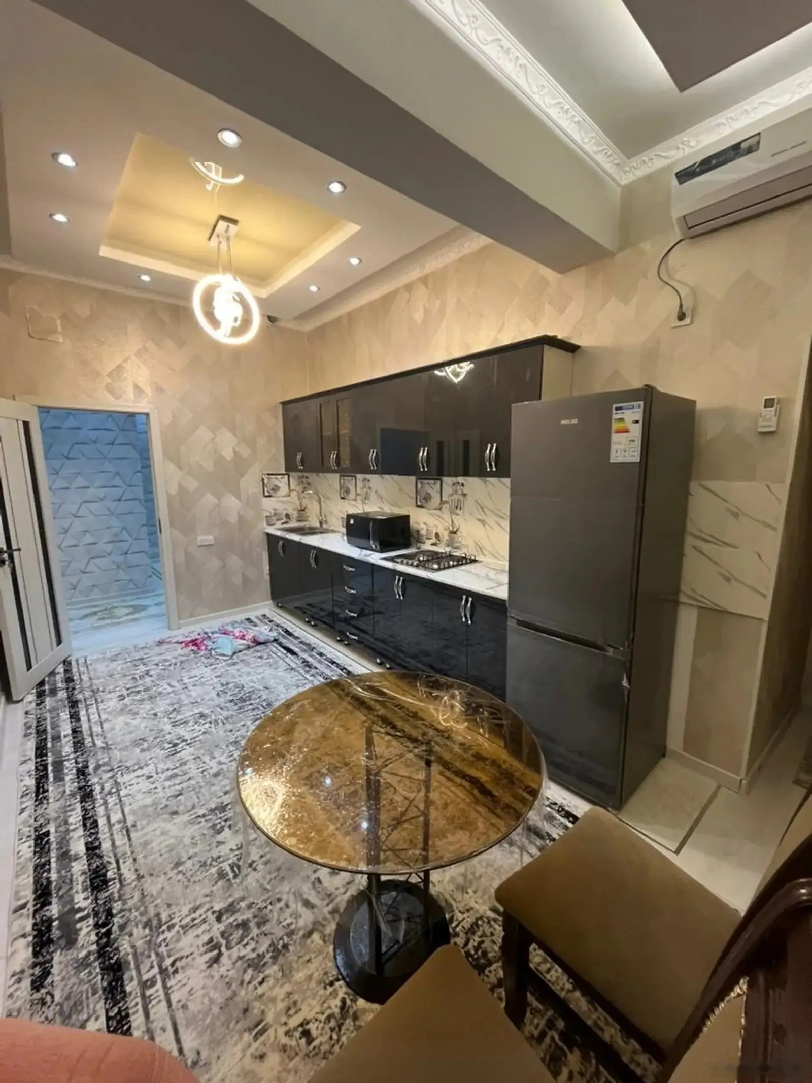 Квартира Находится напротив аэропорта Новостройки 2-х комнатная с ремонтом Люкс Ванная и туалет отдельно На 3-ем этаже Рядом с домом Парвиз 12-ти этажный дом