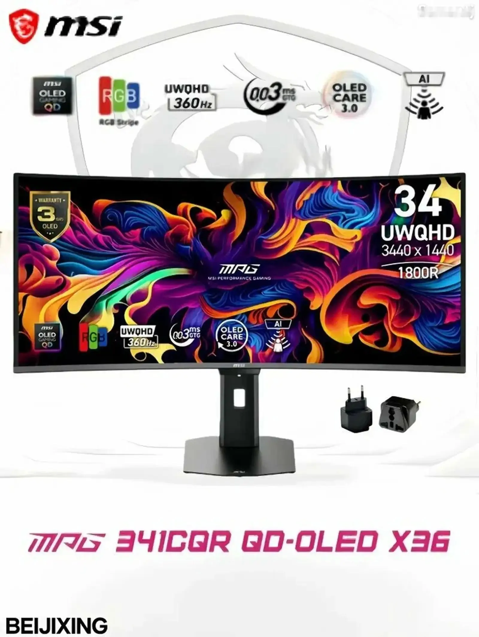 MSI MPG 341CQR QD-OLED X36:Дисплей: 34 дюйма, QD-OLED (Samsung),