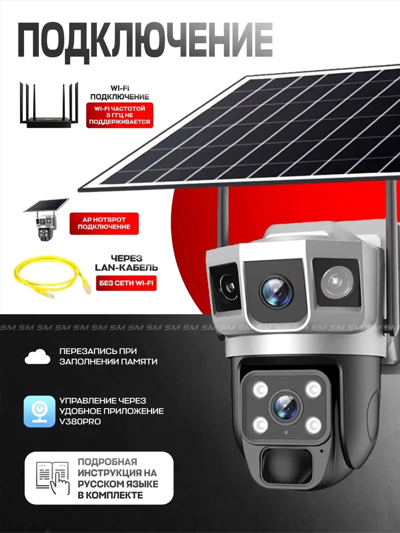 ЭТА 4G СОЛНЕЧНАЯ КАМЕРА ПОДДЕРЖИВАЕТ ПОДКЛЮЧЕНИЕ ТОЛЬКО SIM-КАРТЫ. Версия 4G-камеры Сеть: Поддержка только локального 4G LTE,...