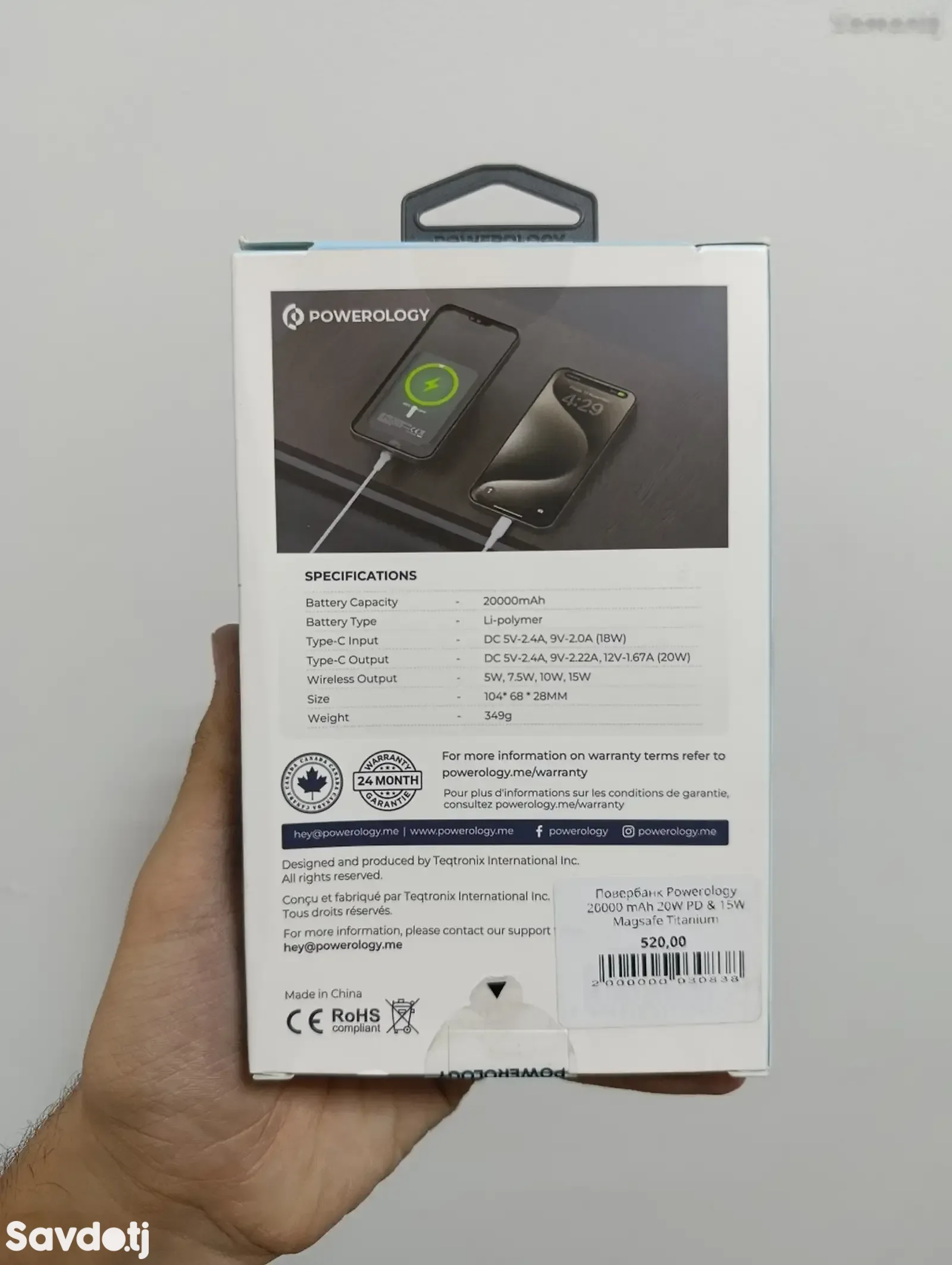 Повербанк Powerology 20000 mAh 20W PD & 15W Magsafe Desert Titanium
