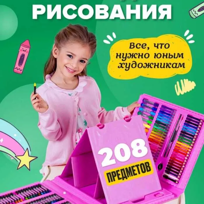Художественный набор 208 предметов — универсальный набор для рисования в кейсе для каждого творческого ребенка!