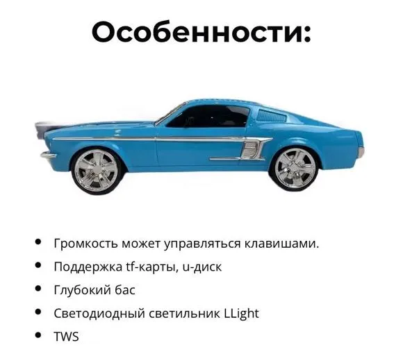 Ин мошинча калонка блютуз аст. Заряд мемонед ва ин мошинча метавонад телефонатона заряд дихад, боз занг мезанед гап мезанед. Флешка мебарад. Дуто кабел дорад яктояш usb ва яктои дигар aux. Мошинча охани аст бенихоят зебо.