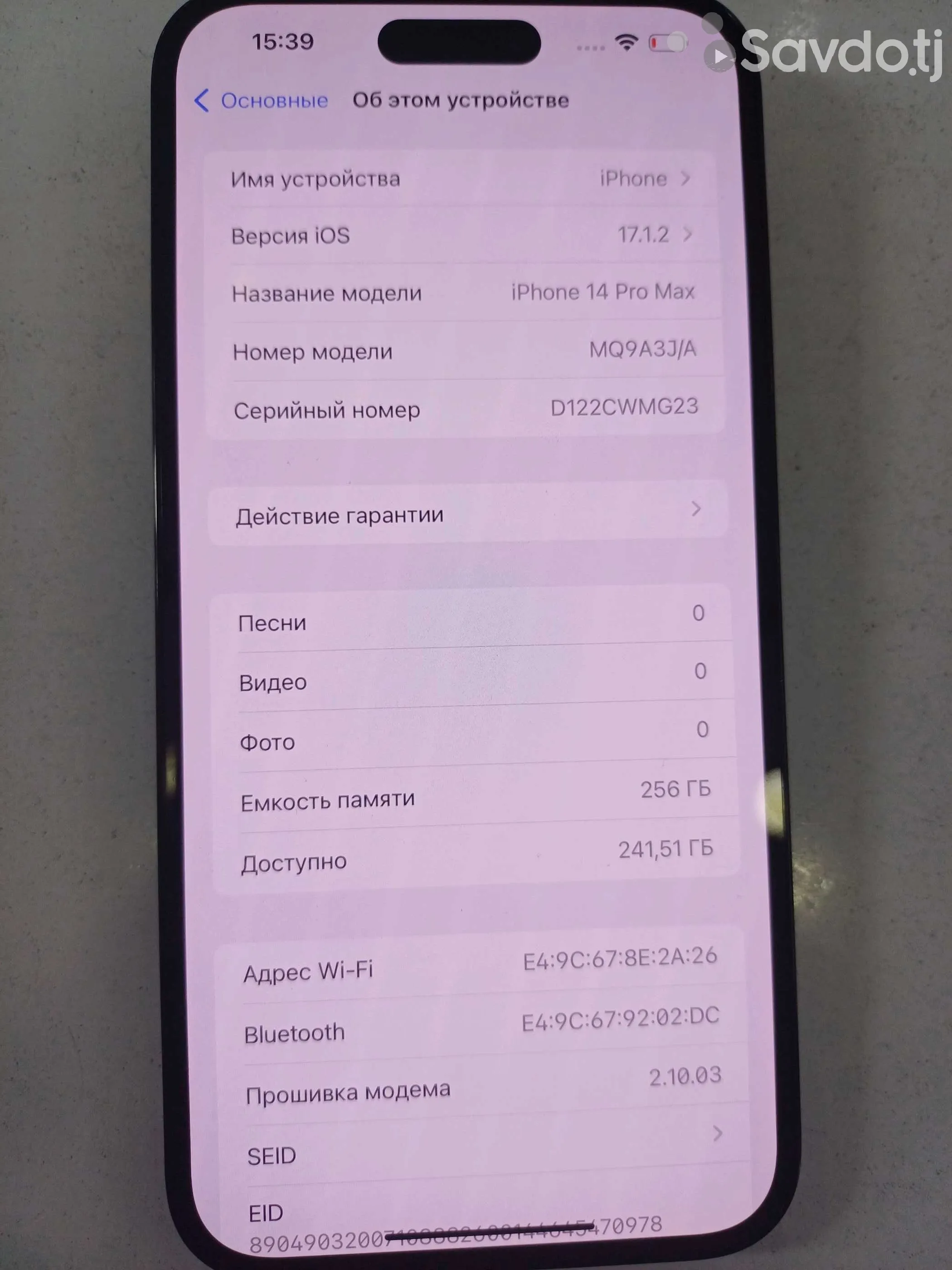 - Объем памяти 256 gb
