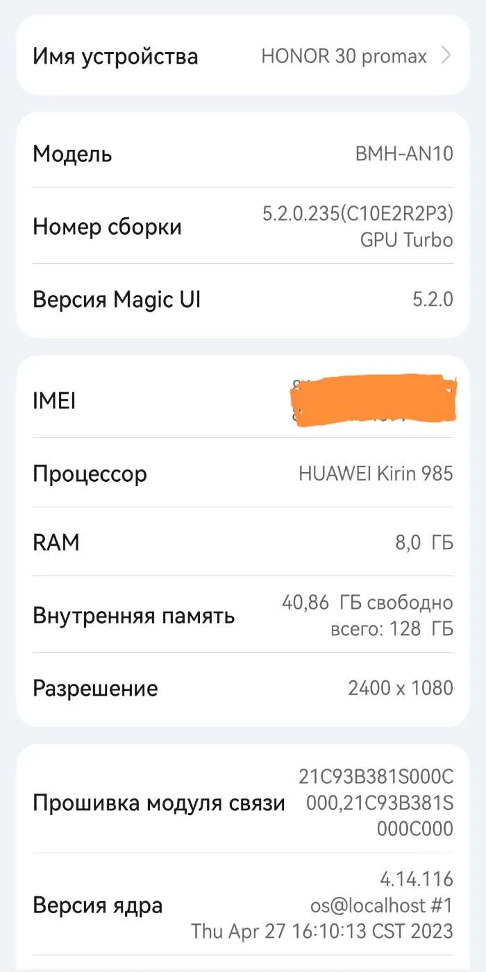 - Объем памяти 128 gb