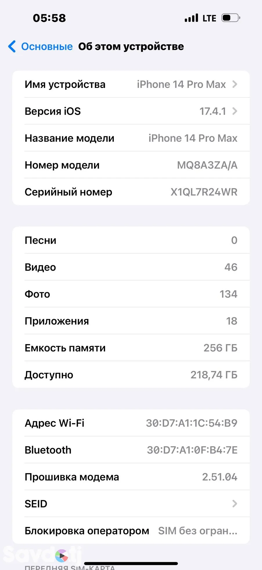- Объем памяти 256 gb